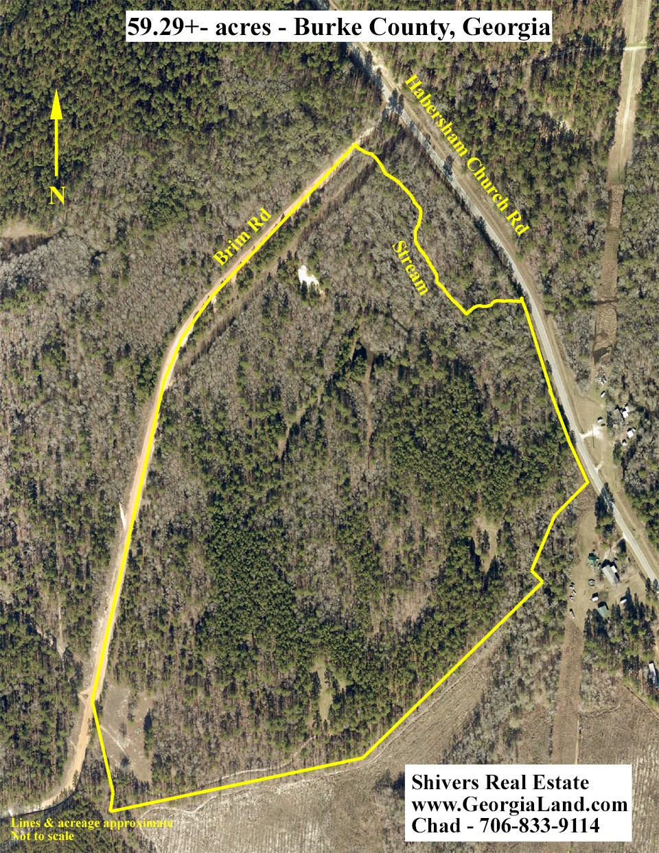 - County paved road frontage on Habersham Church Road; county dirt road frontage on Brim Road