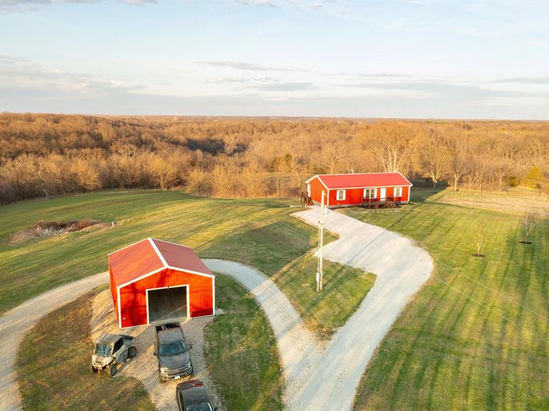 Welcome TO Your Dream Property IN RAY County, Missouri. Nestled on 30 acres, approximately ten miles north of Richmond, this homestead offers country living at its finest. At the end of the long gravel driveway, you will find a cozy home and a spacious shop. The front porch of the house is great for enjoying the sunset, and the back deck is the perfect spot to watch the resident deer herd feed in the evenings. Built in 2017, this 1,200 square foot home offers an open-concept living/kitchen design, ideal for entertaining or relaxing with the family. The three bedrooms and two full bathrooms are sure to accommodate just about any family size. You will find modern laminate flooring and an unfinished basement that could give additional living space and another bedroom. A 30'x24' shop is complete with concrete floors and 120/240V. Surrounding the home, you have 4 open acres with an opportunity for additional income by planting row crops or food plots for the wildlife. With a little clean-up, the 0.25 acre pond can be a great place to spend summer evenings fishing with family and friends. Whether it's a weekend getaway or a place to raise a family, this country home is sure to please. Call today to schedule a private showing and make 40476 East 180th Street your new address. Owner/Agent