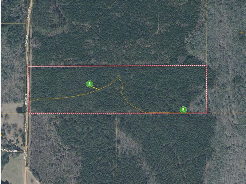 Description: The Spay Road 41 Tract is a great timber investment and hunting tract. This property has 37 acres of 18 year old planted pines and 4 acres of mature hardwoods. There is a nice internal road system with 2 food plots in place. There is 600 feet of county road frontage with power along the road. This place is also a nice home or cabin site. There is a nice stream that runs through the back side of the property.