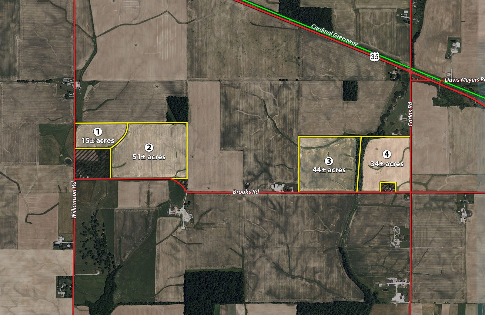 • 134.13 Fsa Total Crop Acres • Productive Cropland • 2026 Crop Rights To Be Conveyed • Nice Woodland With Stream • Well Maintained Waterways • Good Hunting Potential • Just Off Us 35 On Brooks Rd • Good Frontage On Williamson, Brooks & Carlos Rd