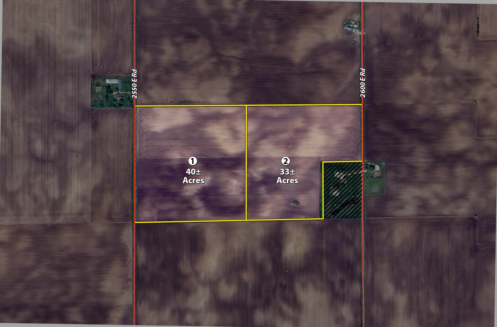 Tract 2: 33± ac Productive farmland and nearly all tillable but road. Frontage on 2600 E Rd.