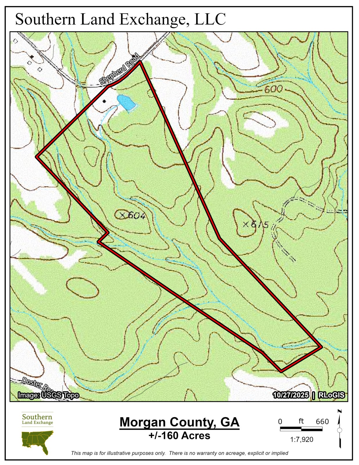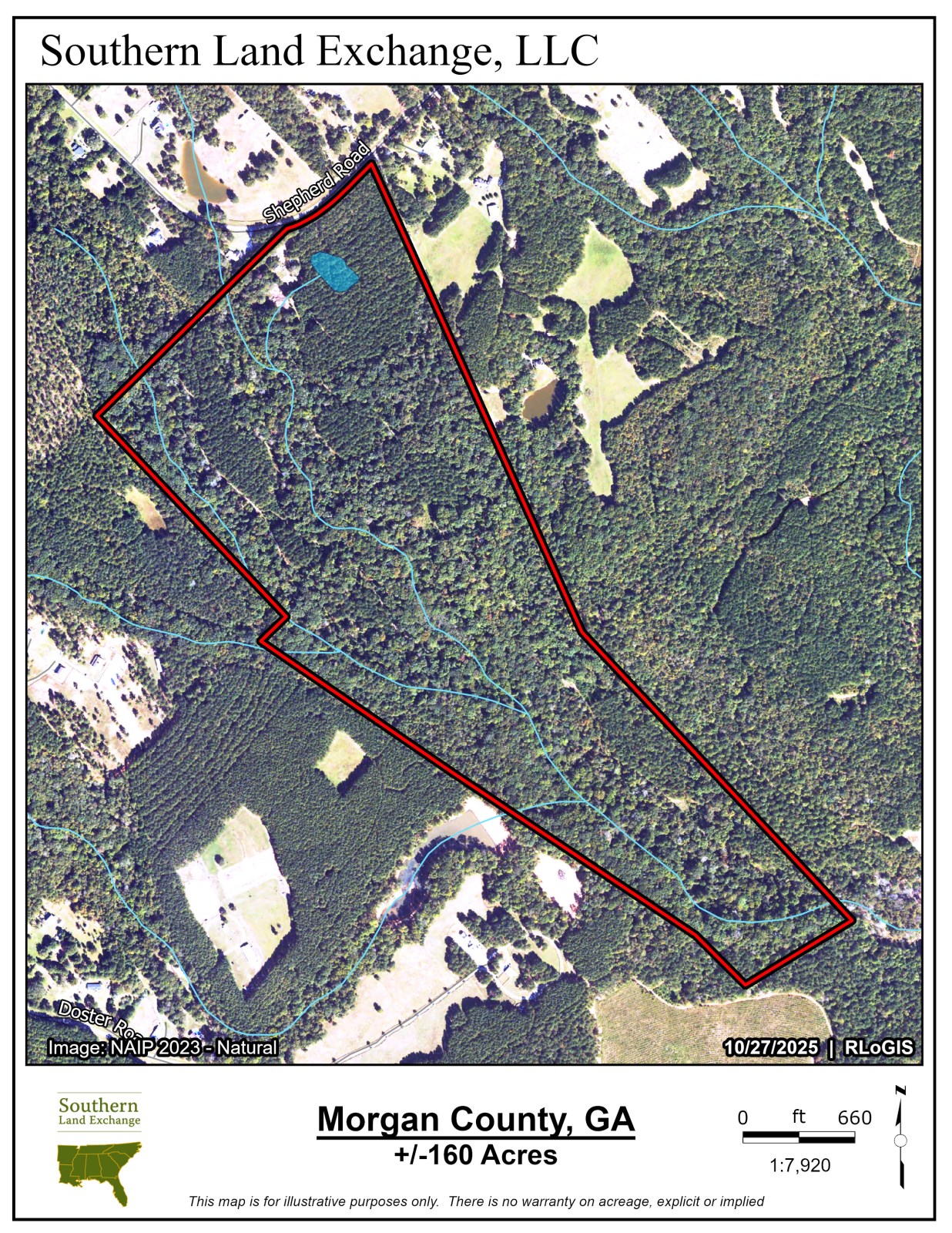 Southern Land Exchange is proud to present 1321 Shepherd Road - 160 acres in Morgan County coming to market for the first time in 45 years. Located in one of Madison's most desirable areas, the property is less than 10 minutes north of historic downtown Madison, 10 minutes from Hard Labor State Park and less than 2 miles from Scarlett Oaks Estate. There's a good internal road & trail network and with the abundance of wildlife, the recreational opportunities are excellent. The property is predominantly hardwoods and with over 9,000 ft of streams, 30+ acres of mature pine stands and sandy creek bottoms, you are surrounded by natural beauty. There is over 600 ft of frontage on Shepherd Road, allowing for the potential for the new owner to divide the property. Additionally, there is a 1920'S historic home on the property, currently occupied with tenants. For those looking for a pond or lake, this property does have an existing old pond site and with all the water running through the property there could be potential for a much larger lake to be built. Come be a part of Madison's small-town charm and thriving outdoor culture. For more information or to schedule your private tour, call Travis Ebbert.
