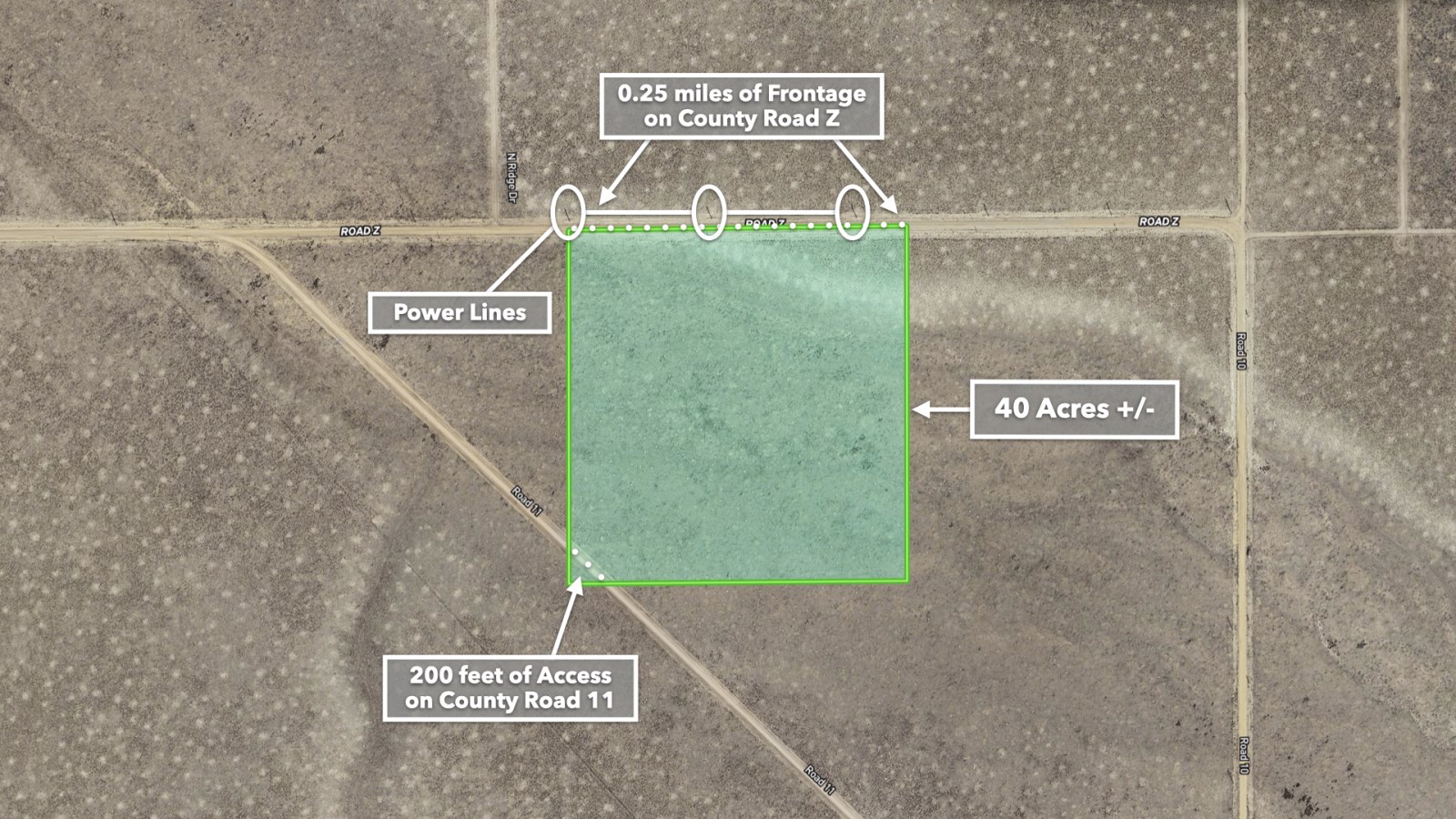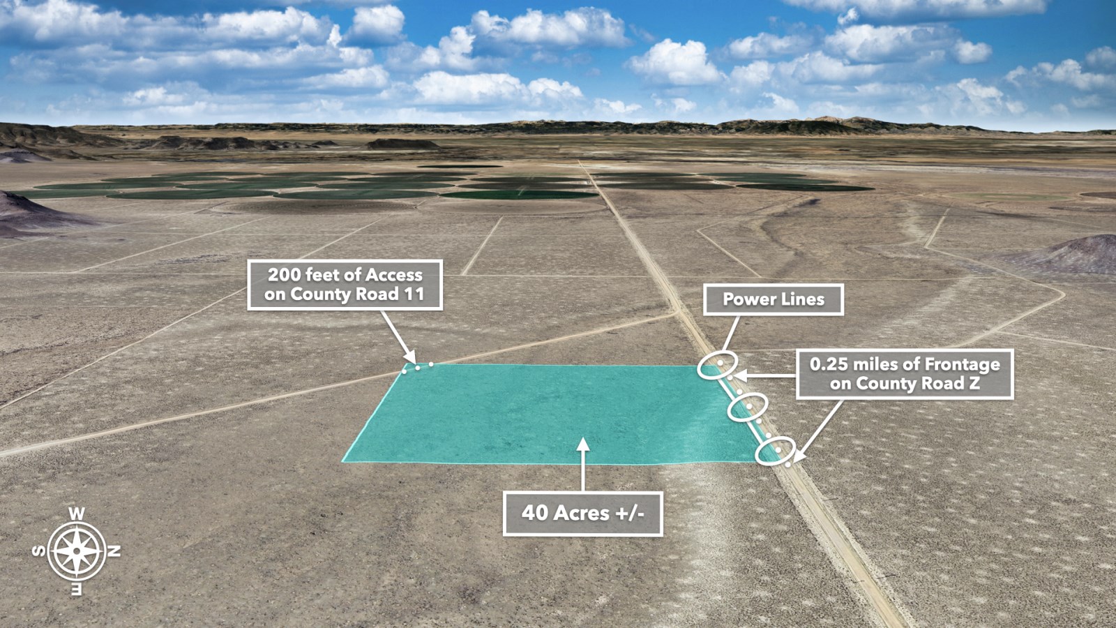 The property has great drive-up access, with County Road Z giving a 0.25 mile of road frontage along the entire North Boundary, while County Road 11 runs through the Southwest corner.