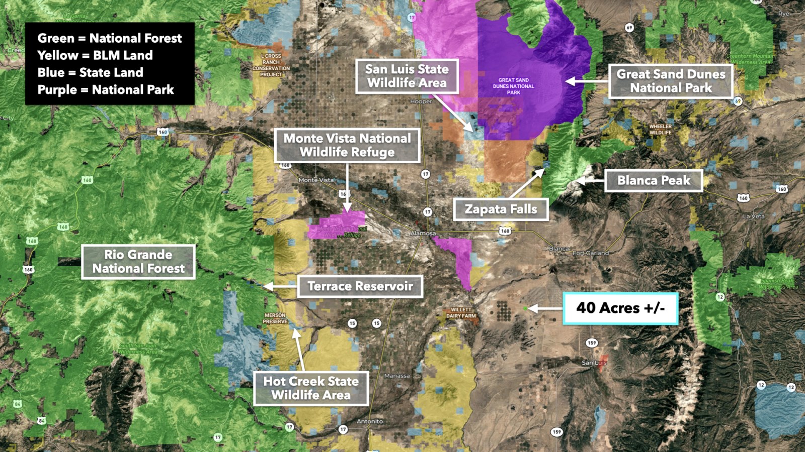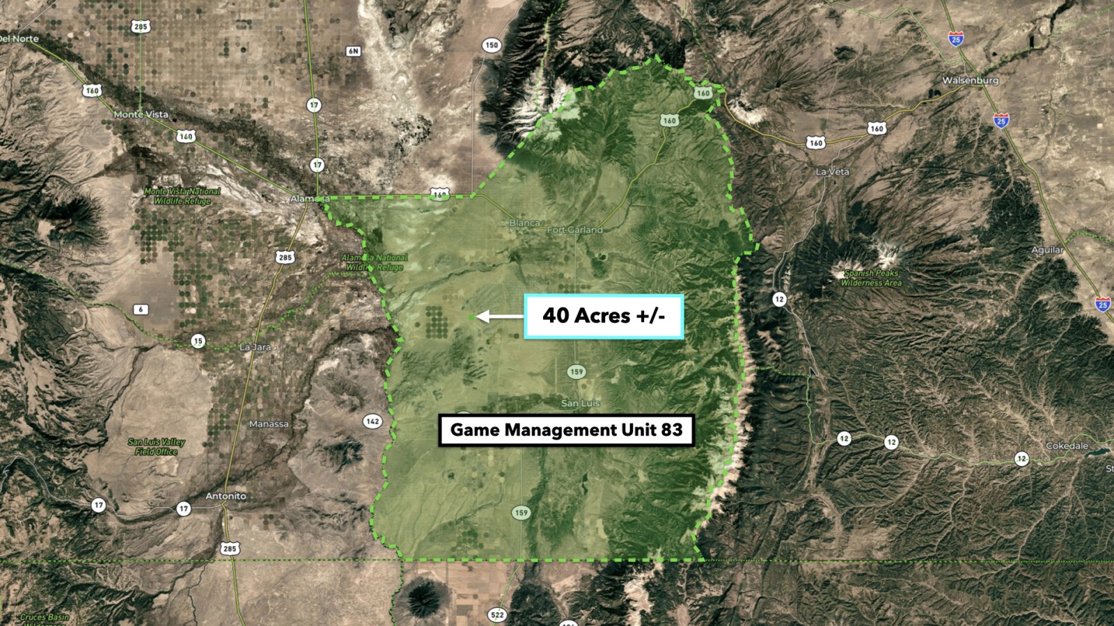 Alamosa National Wildlife Refuge & Visitor Center is only 30 miles from the parcel, where you'll find opportunities for hunting, wildlife viewing & photography.