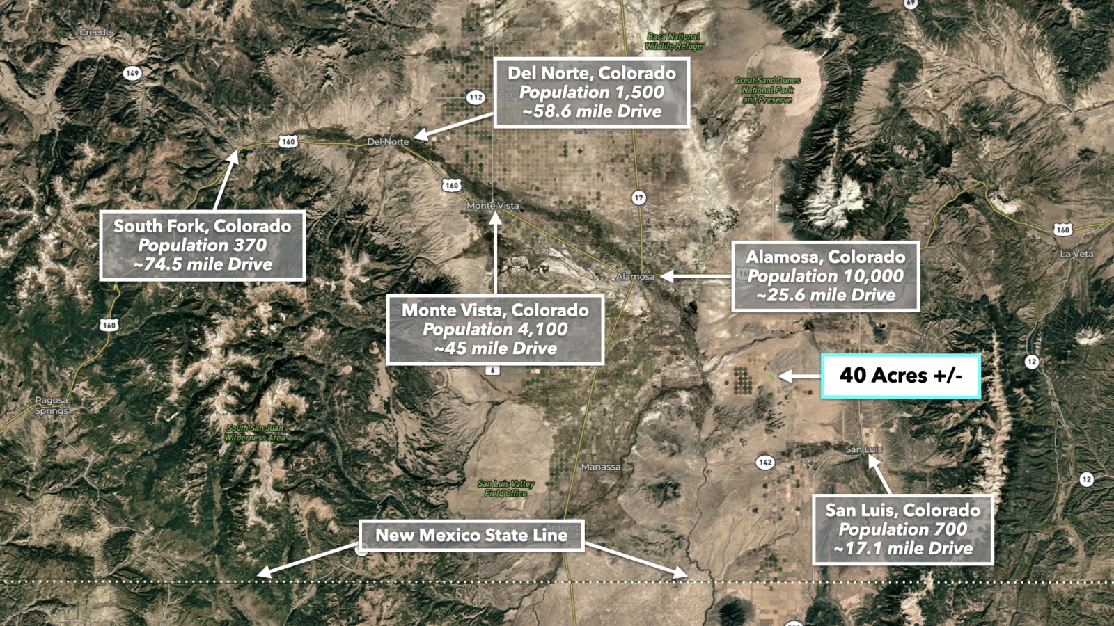 The property is only 26 minutes from the town of San Luis. San Luis was established on April 5, 1851 and is Colorado's Oldest Town.