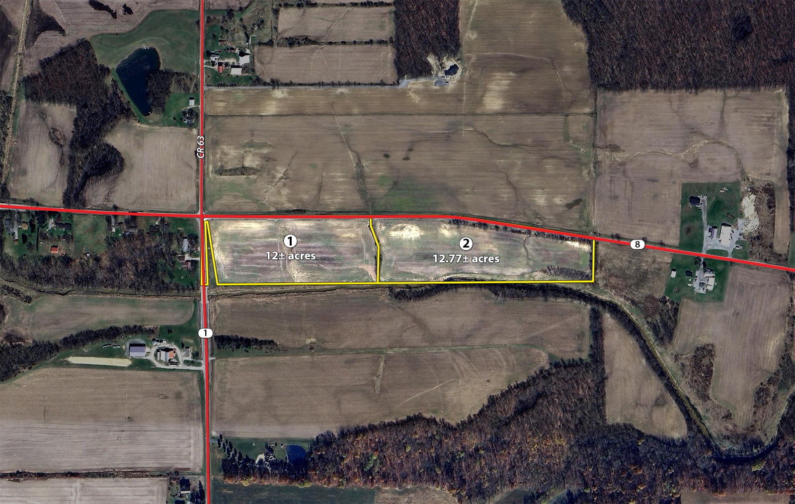 Tract 1: 12± ac offers an excellent opportunity for a building site in a highly desired location, or it can be retained as productive tillable farmland. The tillable acreage consists primarily of Glynwood loam, Rensselaer loam, Rawson sandy loam and Wallkill silt loam soils. A major highlight of this tract is its outstanding location, featuring over 1,100+/- feet of road frontage and a corner setting at the intersection of SR 1 and SR 8, providing both visibility and accessibility.