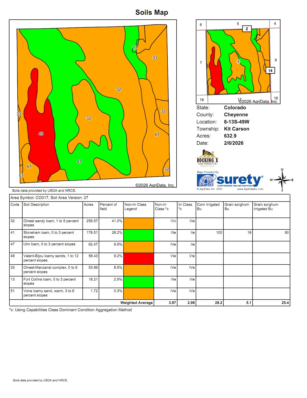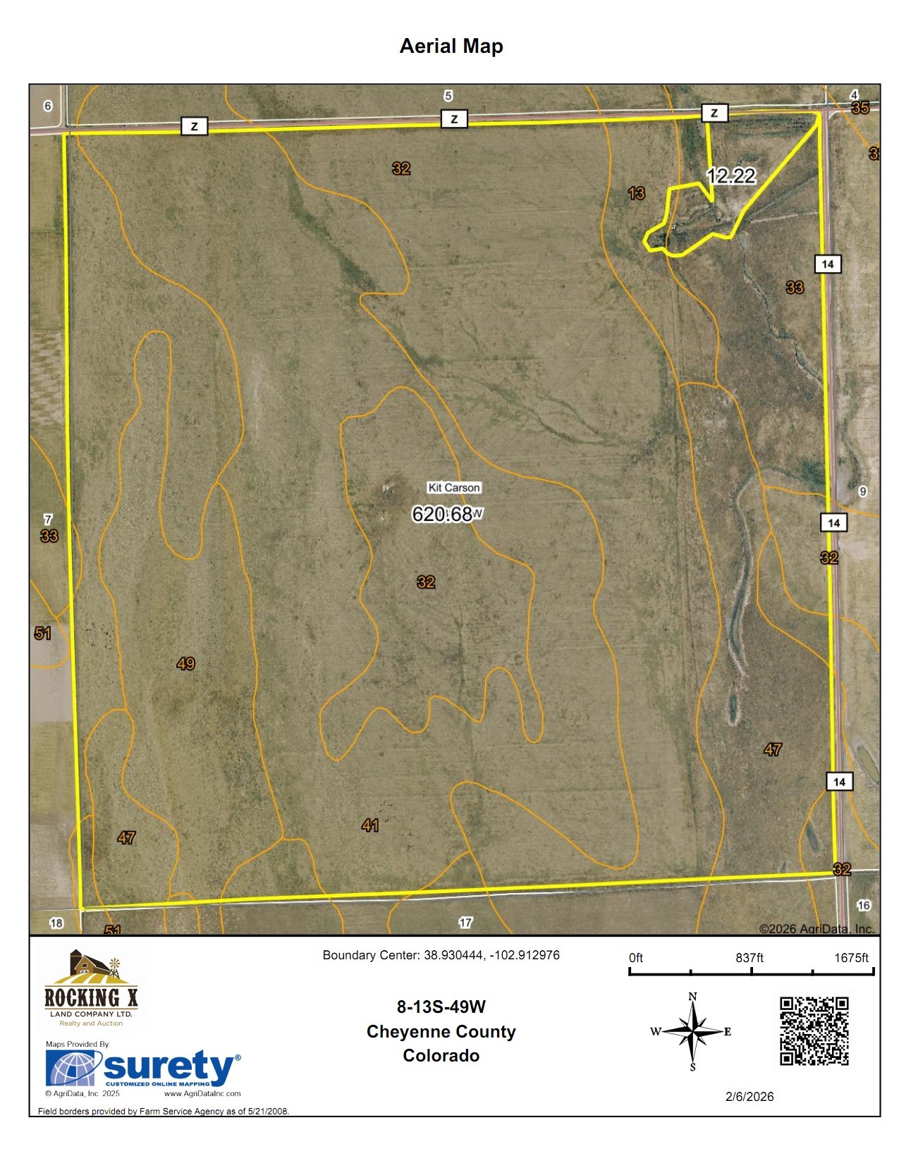 Here is a rare opportunity to own all of Section 8, Township 13 South, Range 49 West in Cheyenne County, Colorado. This 632.9± acre parcel offers a strong combination of productive native pasture and dependable CRP income, making it an attractive addition to a cattle operation or long-term land portfolio.