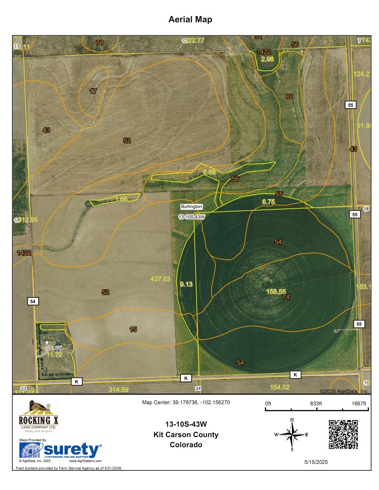 67.73 Acres CRP at $38.18 with an annual payment of $2,583. Expires 9/30/2031.