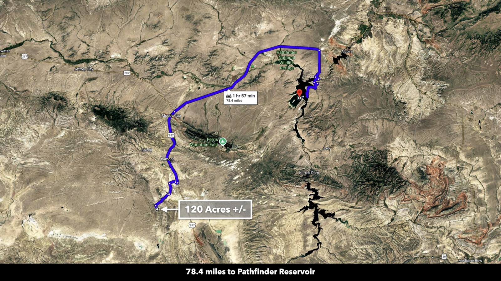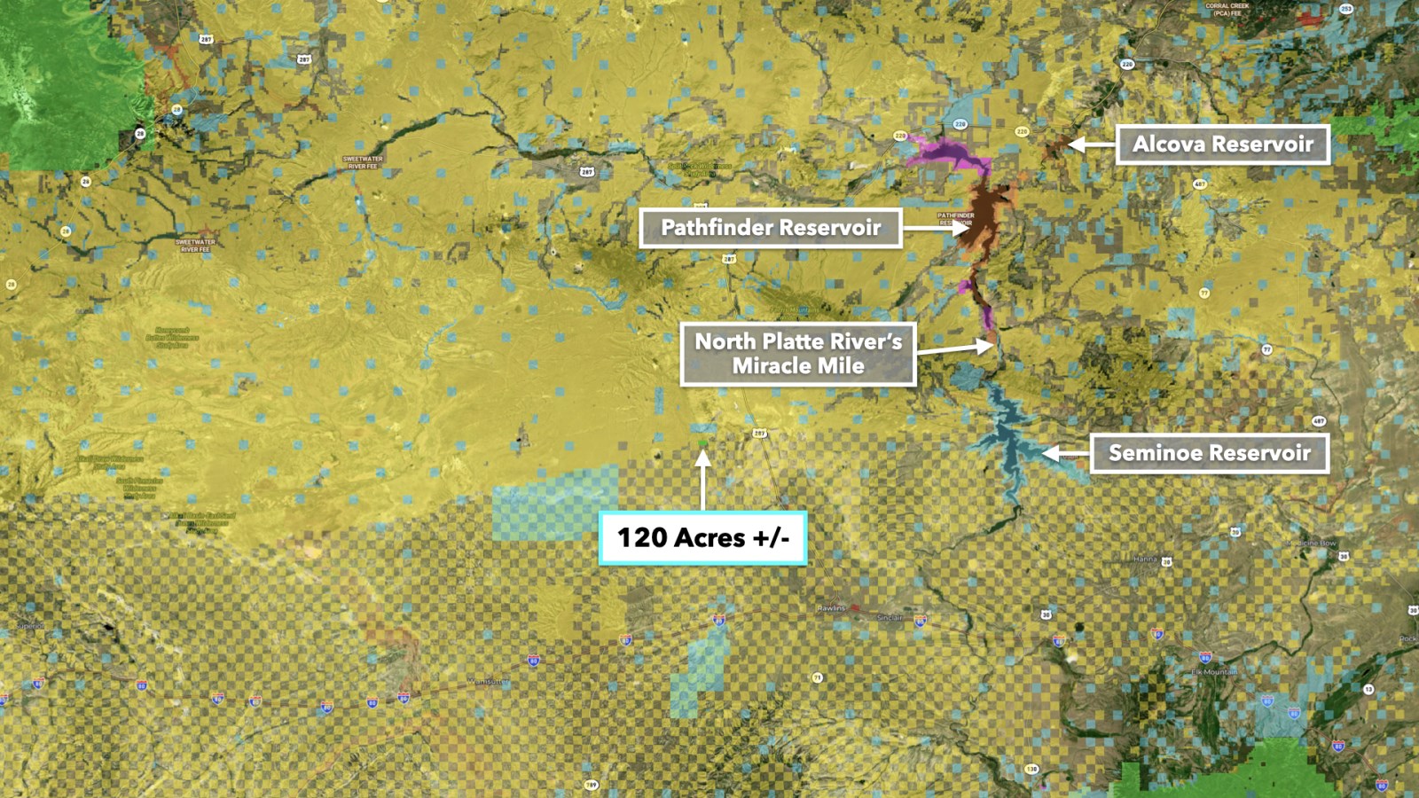 There are several nearby locations for fishing, floating, & water sports. To the east, the North Platte River runs through the Seminoe Reservoir and Seminoe State Park. North of the park, the Pathfinder Reservoir covers 22,000 surface acres for fishing and boating, and the Alcova Reservoir is also publicly available for fishing, boating, and water recreation.
