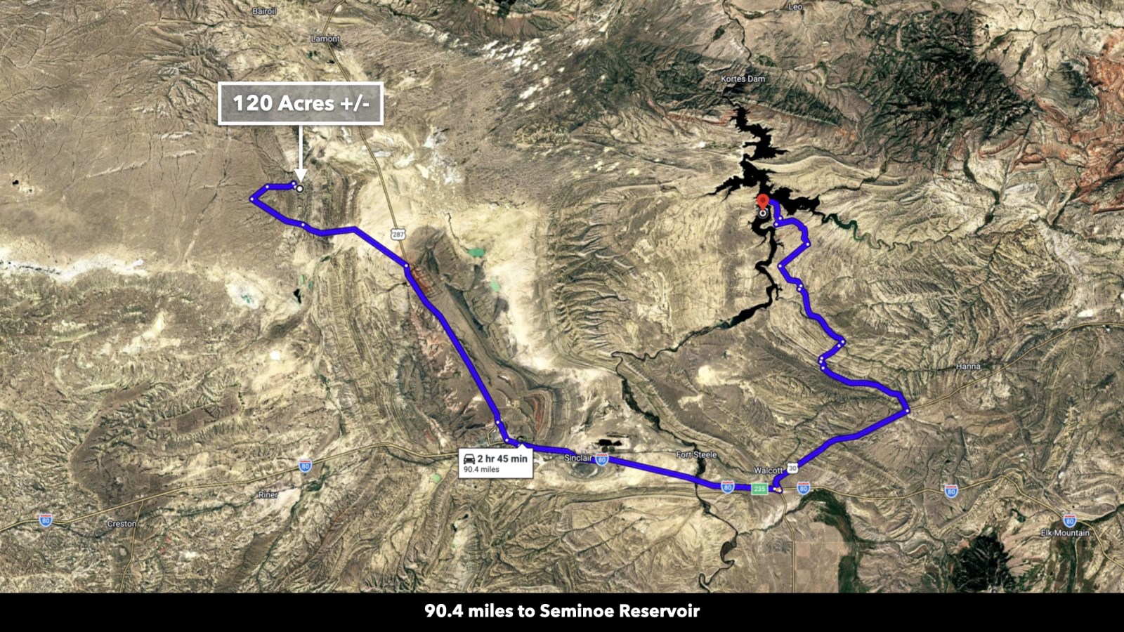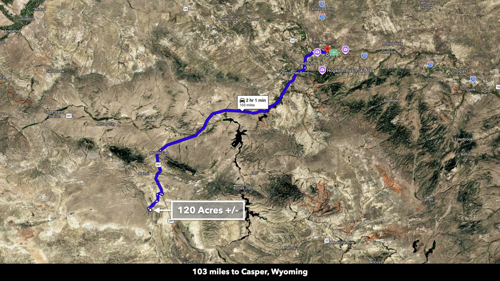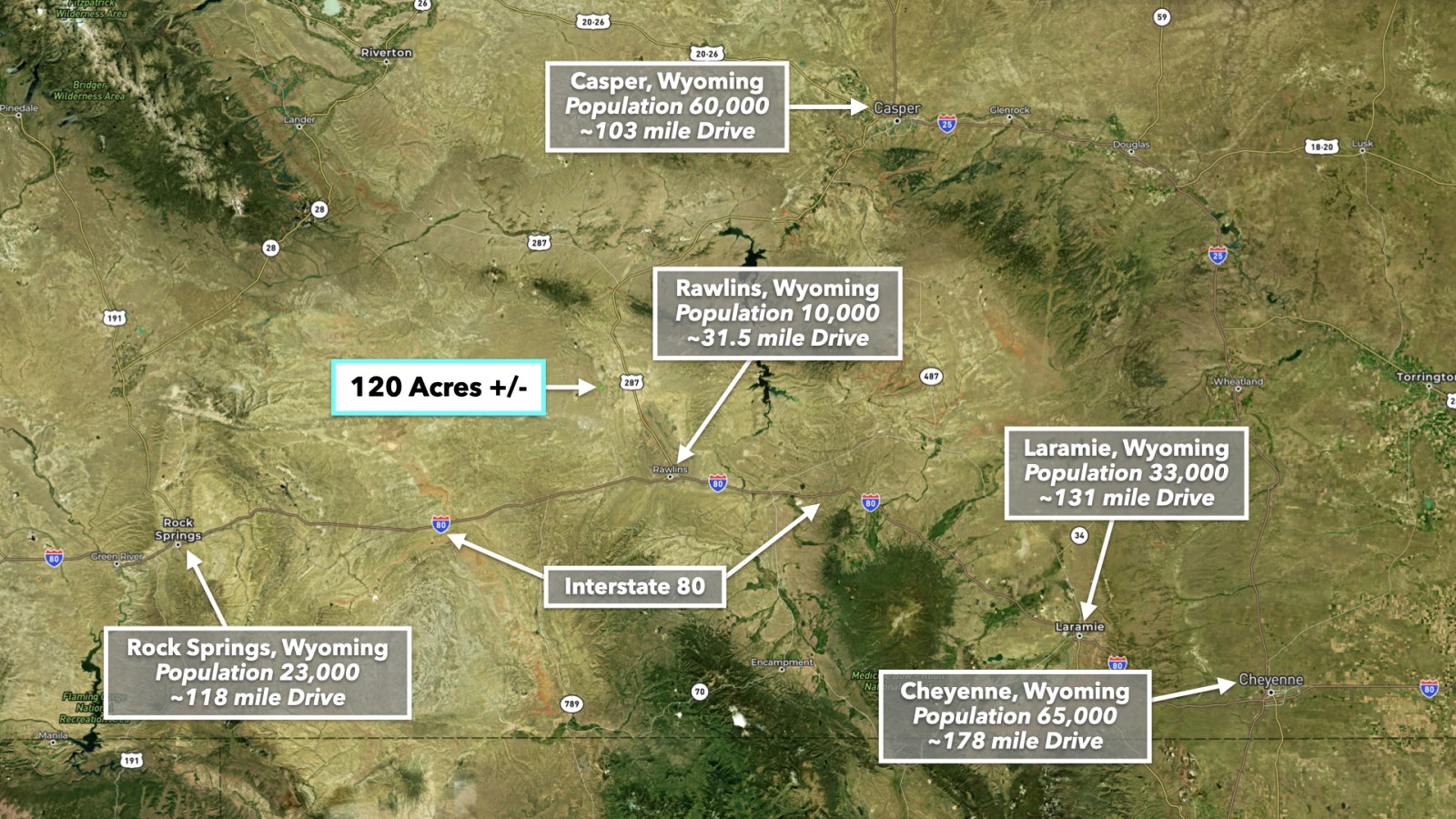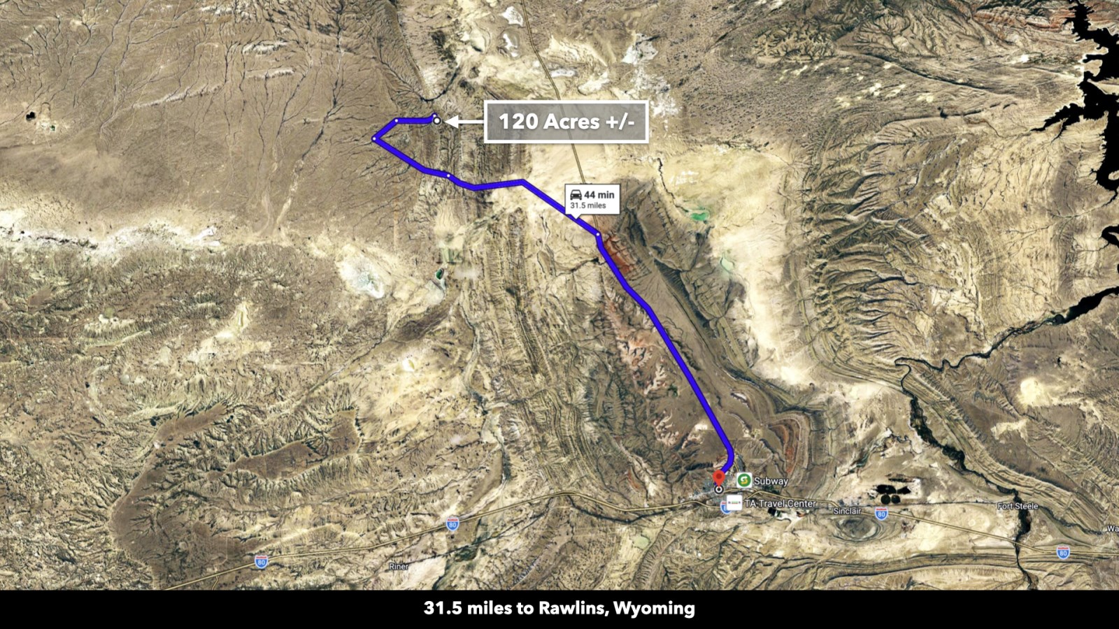 The property has dirt road access which connects to County Road 63 (which is also known as Minerals Exploration Road) and which connects to US Highway 287. Take 287 south into Rawlins or North into Casper. Both cities have restaurants, grocers, and professional and medical services available.