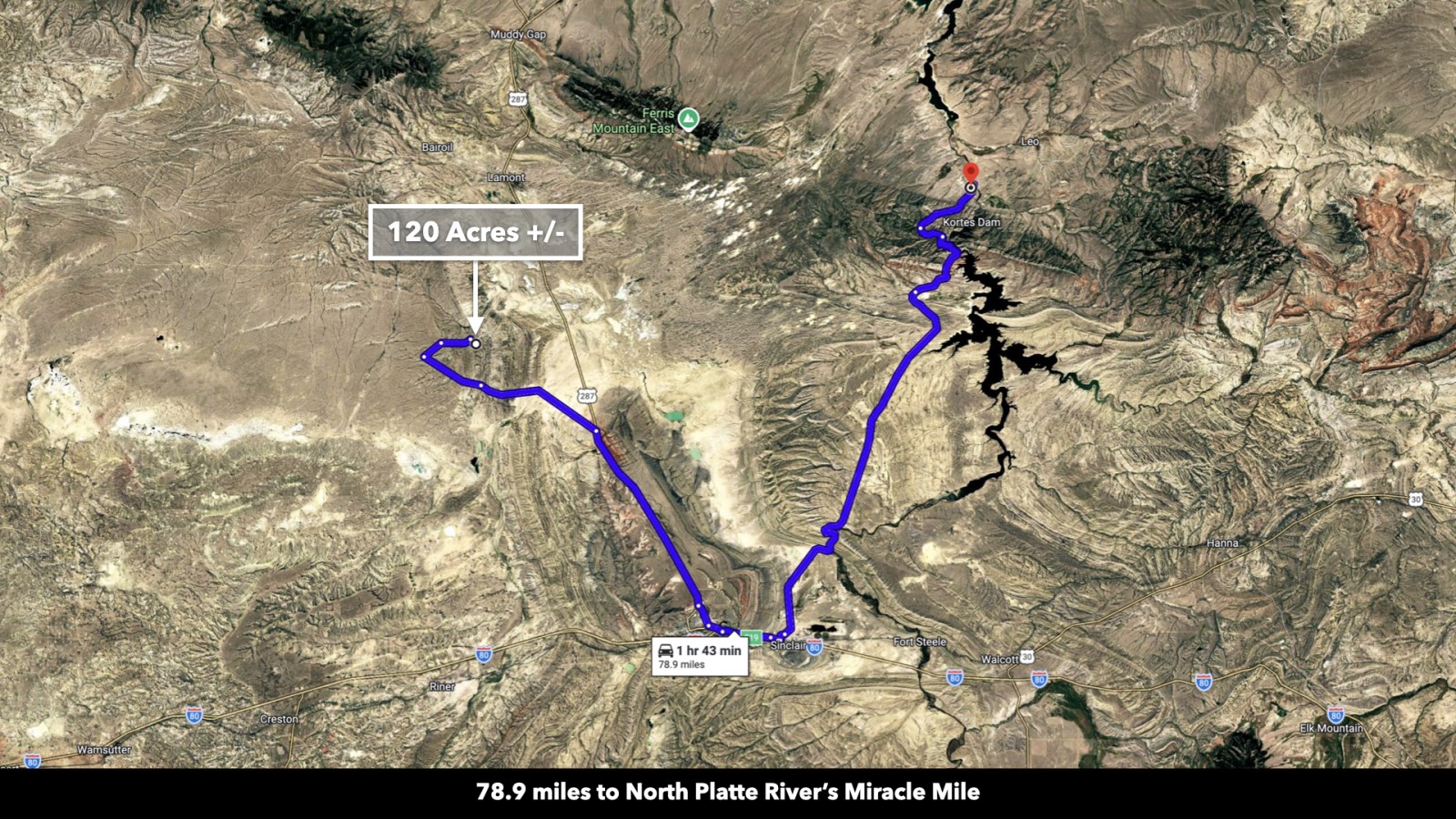 This property offers room to roam. The property borders over a million Acres of BLM land along the entire North and West boundary. This public land stretches contiguously all the way to the Green Mountain, Whiskey Peak, Seminoe State Park, and much more. Some of the mountain features that can be seen from the property are Bradley Peak, the Ferris Mountains, and the Bull Springs Rim.